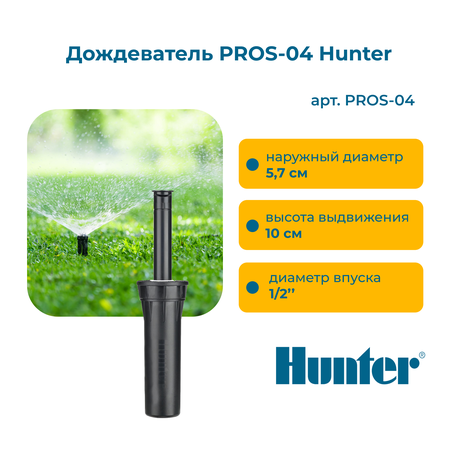 Дождеватели Hunter Pro-Spray сконструированы с высокой точностью и гарантируют долговременную надежную эксплуатацию на приусадебных участках. Доступны модели с высотой выдвижной штанги до 30см. Pro-Spray имеет прочный корпус, эксклюзивный дизайн крышки, предотвращающий протекание и надежный внутренний механизм. Дождевателю подходят регулируемые и фиксированного сектора полива сопла, а также MP Rotator. Все модели идут в комплекте с промывочным соплом удобной конструкции для защиты от засорения. Pro-Spray подходят также все стандартные сопла с внутренней резьбой других производителей, что дает дополнительное преимущество использования. Особенности