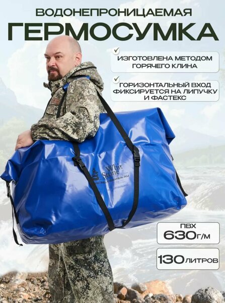 Гермомешок / герморюкзак / герметичный мешок / драйбег / гермосумка/ гермобаул/ произведены в России на заводе Белый Камень! Драйбеги с лямками произведены в России на заводе Белый Камень! Благодаря собственному производству мы обеспечиваем покупателей товарами высокого качества по доступной цене! Гермомешок для рыбалки из пвх абсолютно водонепроницаем, проклеенные швы гарантируют сухость ваших вещей в любую погоду и в любых условиях. Особенно актуален гермобаул на сплавах. Через сложенную в несколько раз горловину гермомешка, не просочится влага, потому что плотно прижатые друг к другу гладкие внутренние стенки надежно перекрывают все пути сырости. Верх драйбега фиксируется на липучку и фастекс. Даже если лодка перевернется, будьте спокойны за состояние своих вещей. Драйбег изготовлен методом сварки на импортном оборудовании методом горячего клина из качественной ткани с 2-х сторонним пвх-покрытием, плотностью 630 гр./м. кв. К плюсам материала также можно добавить эластичность при отрицательных температурах. Ветки и сучья не способны повредить толстый и прочный ПВХ, поэтому влага внутрь не проникнет. Драйбег имеет 2 формованные лямки крепящиеся на мешок при помощи строп и пряжек. Лямки, позволяют грузить его значительно больше, чем обычные гермоупаковки и значительно облегчают переноску груженого мешка. Более того, драйбег можно использовать как обычный рюкзак. Размеры: Сумка-драйбег 130л высота 79, длина 81, ширина 26