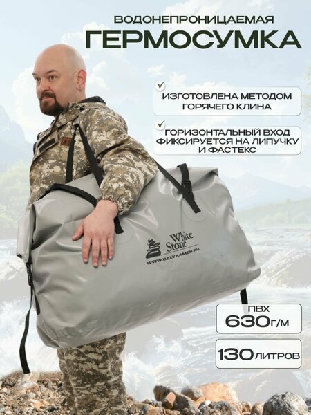 Гермосумка / герметичная сумка-чехол / гермобаул / герморюкзак / драйбег White Stone: водонепроницаемый и надежный аксессуар Драйбеги с лямками произведены в России на заводе Белый Камень. Благодаря собственному производству мы обеспечиваем покупателей товарами высокого качества по доступной цене! Гермосумка объемом 130 литров от White Stone - это незаменимый аксессуар для любителей активного отдыха. Она станет вашим надежным спутником на рыбалке, охоте, сплаве или сапборде. Сумка - чехол изготовлена из качественного ПВХ, который обладает высокой прочностью и эластичностью при отрицательных температурах. Благодаря этому, сумка не боится веток и сучьев, и влага внутрь не проникнет. Гермосумка оснащена проклеенными швами, которые гарантируют сухость ваших вещей в любую погоду. Верх сумки фиксируется на липучку и фастекс, что обеспечивает дополнительную защиту от влаги. Особенностью сумки является ее вместительность. Размеры сумки составляют 119 см в высоту, 42 см в диаметре, что позволяет вместить большое количество вещей. Вес сумки составляет всего 1,4 кг, что делает ее удобной для переноски. Сумка имеет одно отделение, что позволяет удобно разместить все необходимые вещи. Выбирая гермосумку от White Stone, вы получаете надежный и удобный аксессуар для активного отдыха, который обеспечит сохранность ваших вещей в любых условиях. Размеры: Сумка-драйбег 130л высота 79, длина 81, ширина 26