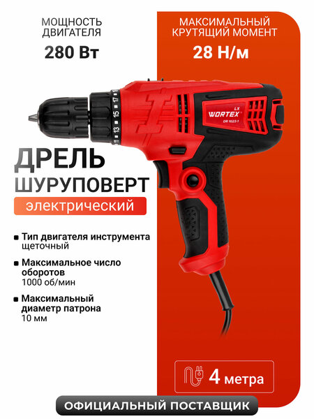 Дрель-шуруповёрт сетевая WORTEX LXDR1023-1 - это шуруповёрт с мощностью 280 Вт, который работает от сети и имеет 2 режима скорости. Он имеет быстрозажимной патрон диаметром до 10 мм, что позволяет работать с различными материалами, включая дерево и металл. Преимущества: - Быстрозажимной патрон - позволяет быстро менять насадки и работать с разными материалами. - Реверс - позволяет легко извлекать застрявшие в материале инструменты. - Регулировка частоты вращения - позволяет настроить скорость в зависимости от задачи. - Сетевая - не требует зарядки и может работать в любом месте, где есть доступ к розетке. - Компактный и лёгкий - удобно держать в руке и работать длительное время. Этот шуруповёрт станет отличным помощником в работе и поможет вам выполнить любые задачи, связанные с ремонтом и строительством.