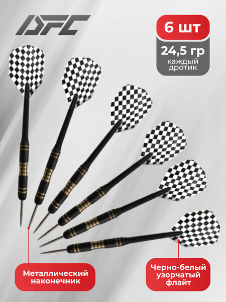 Набор дротиков для дартса DAR3324: качество и функциональность Набор дротиков для дартса DAR3324 состоит из 6-ти дротиков с чёрно-белым узорчатым флайтом и металлическим держателем. Качественные материалы и дизайн Каждый дротик имеет вес 24,5 грамм, что делает их подходящими для использования опытными или профессиональными игроками. Толщина хвата (баррель) составляет 9 мм, обеспечивая комфортное и надежное удержание дротика в руке. Черный и белый цвета Набор дротиков DAR3324 выполнен в классическом черном и белом цветах, что придает ему элегантный и стильный вид. Выбирая набор дротиков для дартса DAR3324, вы получаете качественный и функциональный инструмент для игры в дартс, который обеспечит вам и вашим друзьям множество приятных моментов и ярких впечатлений.