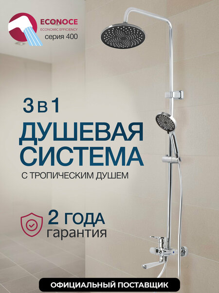 Душевая система D35-A, серия 400 ECONOCE (EC0407) - это высококачественный продукт от известного бренда ECONOCE, который зарекомендовал себя на рынке сантехники благодаря своей надежности и долговечности. Душевая система D35-A оснащена всеми необходимыми функциями для комфортного и приятного использования. Она включает в себя душевую панель, которая обеспечивает равномерное распределение воды, и душевую гарнитуру, позволяющую легко регулировать направление и силу струи воды. Эта душевая система отличается своей экономичностью. Она использует меньше воды, чем традиционные душевые системы, что позволяет экономить на коммунальных платежах. Душевая система D35-A от ECONOCE - это сочетание качества, функциональности и экономичности. Она станет отличным выбором для тех, кто ценит комфорт, надежность и экономичность.