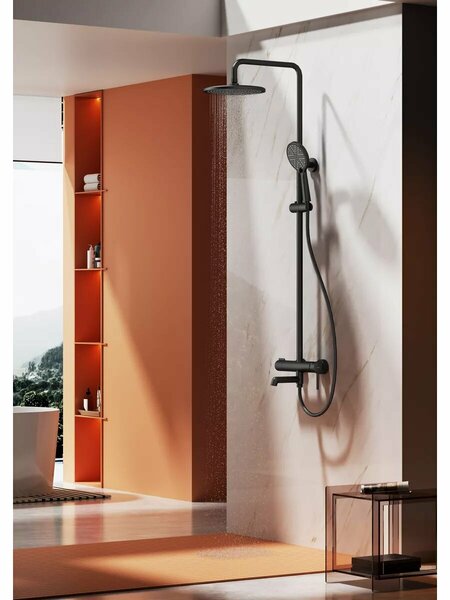 Душевая система Raglo R20.24.06 с тропическим верхним душем в черном цвете. Настенная душевая система с изливом R20.24.06 - продукция высокого качества. Сочетает в себе удобную конструкцию, простоту в установке, универсальный современный дизайн. Превосходно дополнит интерьер любой ванной комнаты. Излив поворотный. Переключатель в изливе - R501.527. Размер верхнего душа 250 мм. Штанга душевой системы регулируется по высоте. Три режима работы ручной лейки. Длина шланга 1500 мм. Лейки из прочного abs-пластика. Данная модель позволит легко регулировать температуру и напор воды, посредством однорычажного управления. Аэратор обеспечивает равномерную подачу воды и ее смягчение. Сетка в устройстве отфильтровывает нежелательные примеси. Душевая система выполнена в модном современном оформлении, необычная модель в дизайнерском исполнении. К данной группе изделий принадлежит традиционный тип приборов, созданных из латуни – долговечного, прочного, надежного материала. Форма изделия округлая. С помощью своей простоты и проверенной надежности модели очень популярны на текущий момент времени.
