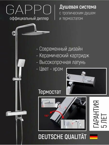 Душевая система с термостатом Gappo G2491, латунь в цвете хром