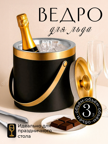 Двухслойное ведро для льда под шампанское металлическое 3 литра - стильный и функциональный аксессуар для сервировки стола. Изготовленное из нержавеющей стали, оно обеспечивает долговечность и устойчивость к коррозии. Особенностью данного ведра является его двухслойная конструкция. Это позволяет сохранять лед свежим и хрустящим дольше, а также предотвращает его таяние. Ведро имеет стильный черно-золотой дизайн, который придаст изысканность и элегантность вашему столу. Диаметр ведра составляет 18 см, а высота и ширина - 17 и 18 см соответственно. В комплекте с ведром идут крышка и щипцы, что обеспечивает удобство использования и позволяет аккуратно доставать лед. Выбирая двухслойное ведро для льда под шампанское металлическое 3 литра, вы получаете стильный, функциональный и надежный аксессуар для сервировки вашего стола.