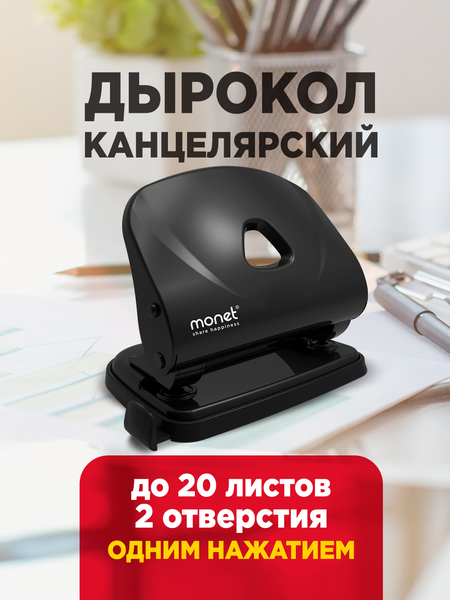 Дырокол Monet 2HP007, пластик, нескользящее основание, 20 пробиваемых листов