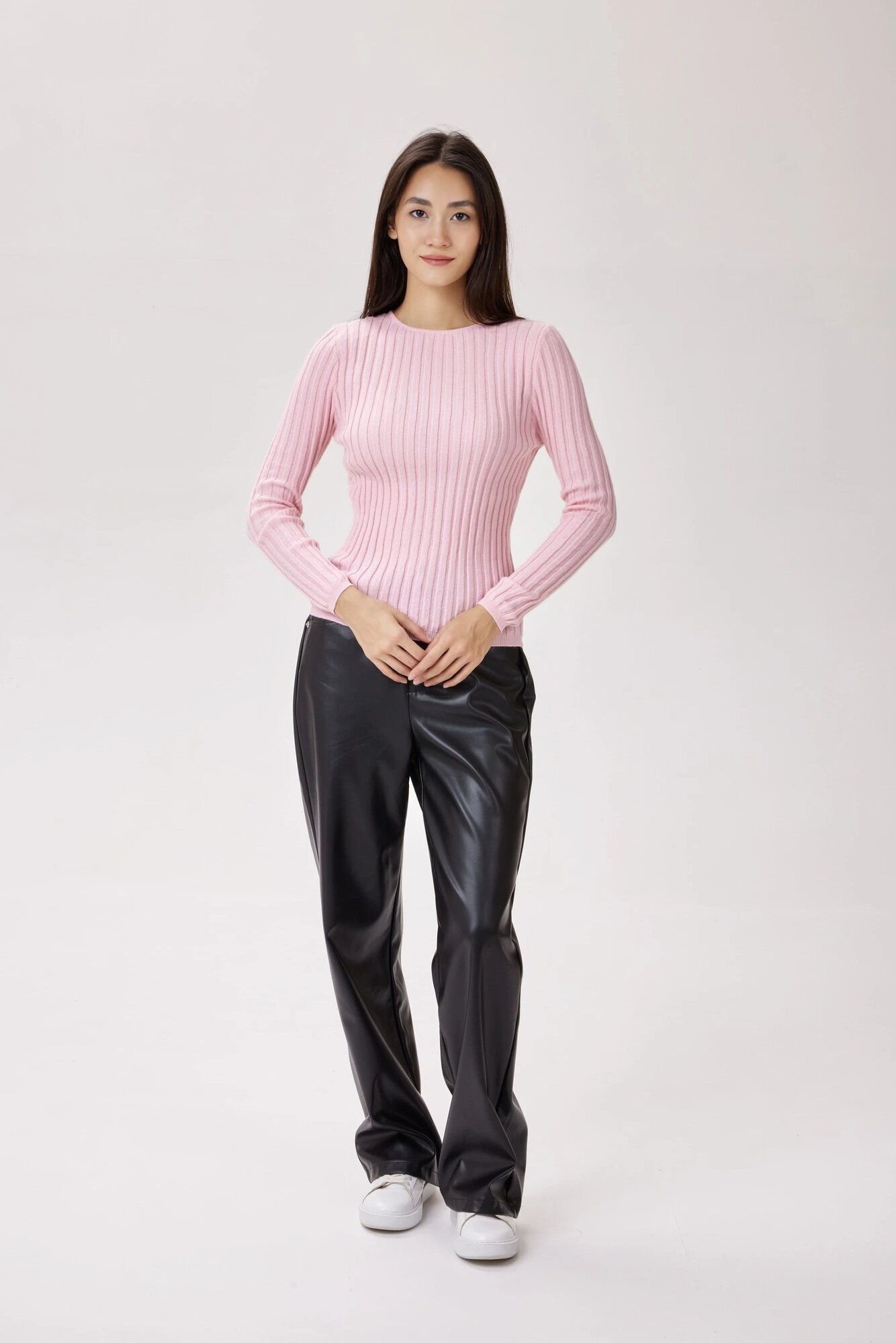 Базовый джемпер полуприлегающего кроя, выполненный из приятного к телу трикотажа в крупный рубчик. Благодаря классической простоте модель можно добавить практически в любой стиль и образ.