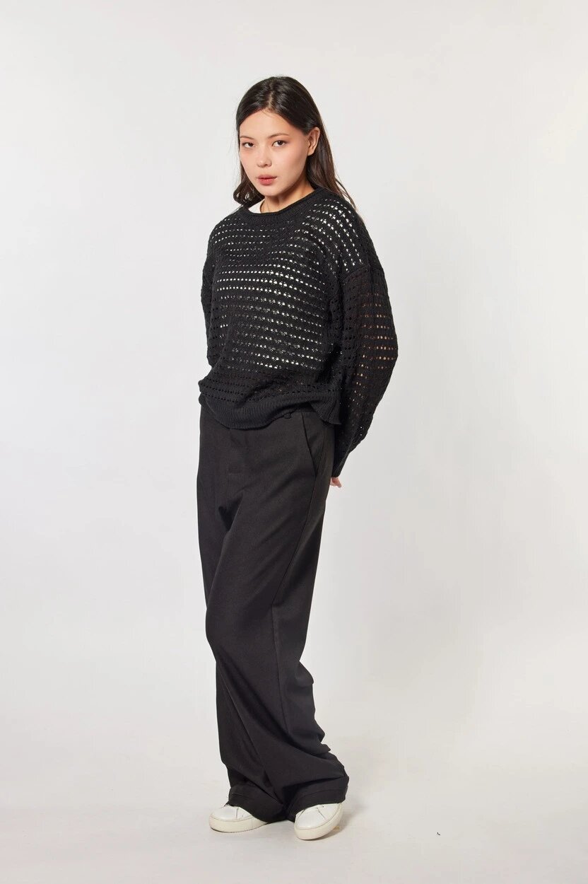 Свободный сетчатый джемпер оригинального дизайна с круглым вырезом и спущенной линией плеча. Можно носить модель самостоятельно или как элемент многослойного образа.