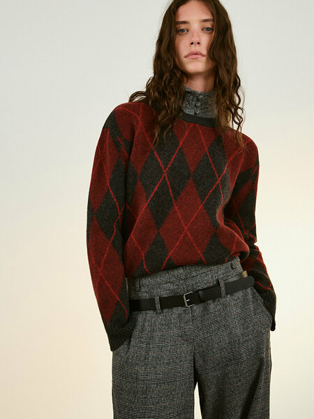 - Женский джемпер прямого кроя из мягкой ткани толстой вязки с добавлением натуральной шерсти - Круглый вырез горловины в рубчик без воротника. Длинные широкие рукава с манжетами в рубчик и спущенной линией плеча. Прямой нижний край - Теплый и суперудобный вязаный джемпер с трендовым принтом аргайл внесет разнообразие в осенний и зимний гардероб под любой стиль и настроение. Свитер в стиле Gentle Retro внесет ретровайбов в сдержанные аутфиты на учебу или в офис. В нем ты вернешься в эстетику 90-х и почувствуешь себя жительницей города Твин Пикс. Сочетай его с любимыми джинсами или юбками и создавай расслабленные и стильные аутфиты Grandpa core, в которых тебе будет максимально тепло и комфортно - Размер на модели: S