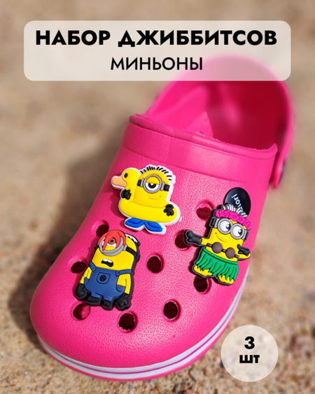 Джиббитсы - это маленькие украшения для обуви, которые которые легко крепятся к сандалиям и сабо. Они могут иметь разную форму и размер. Джиббитсы с изображением Миньонов – это яркие и забавные украшения для обуви, которые привлекают внимание к себе и поднимают настроение. Они изготовлены из высококачественных материалов и имеют яркие цвета и оригинальные дизайны. Миньоны – это любимые персонажи многих детей и взрослых, поэтому джиббитсs с их изображением пользуются большой популярностью. Миньоны - это маленькие существа, которые живут в стране Грювилле в мультике "Гадкий Я". Они очень смешные и забавные, и их изображения на джиббитсах создают атмосферу веселья и радости. Кроме того, джиббитсы с изображением Миньонов могут стать отличным подарком для детей и подростков. Они могут использовать их для создания оригинальных образов, для украшения своей обуви или просто чтобы добавить немного креативности в свой гардероб. Так что если вы ищете оригинальный и необычный аксессуар для своей обуви, то джиббитсы с изображениями веселых Миньонов — это отличный выбор!