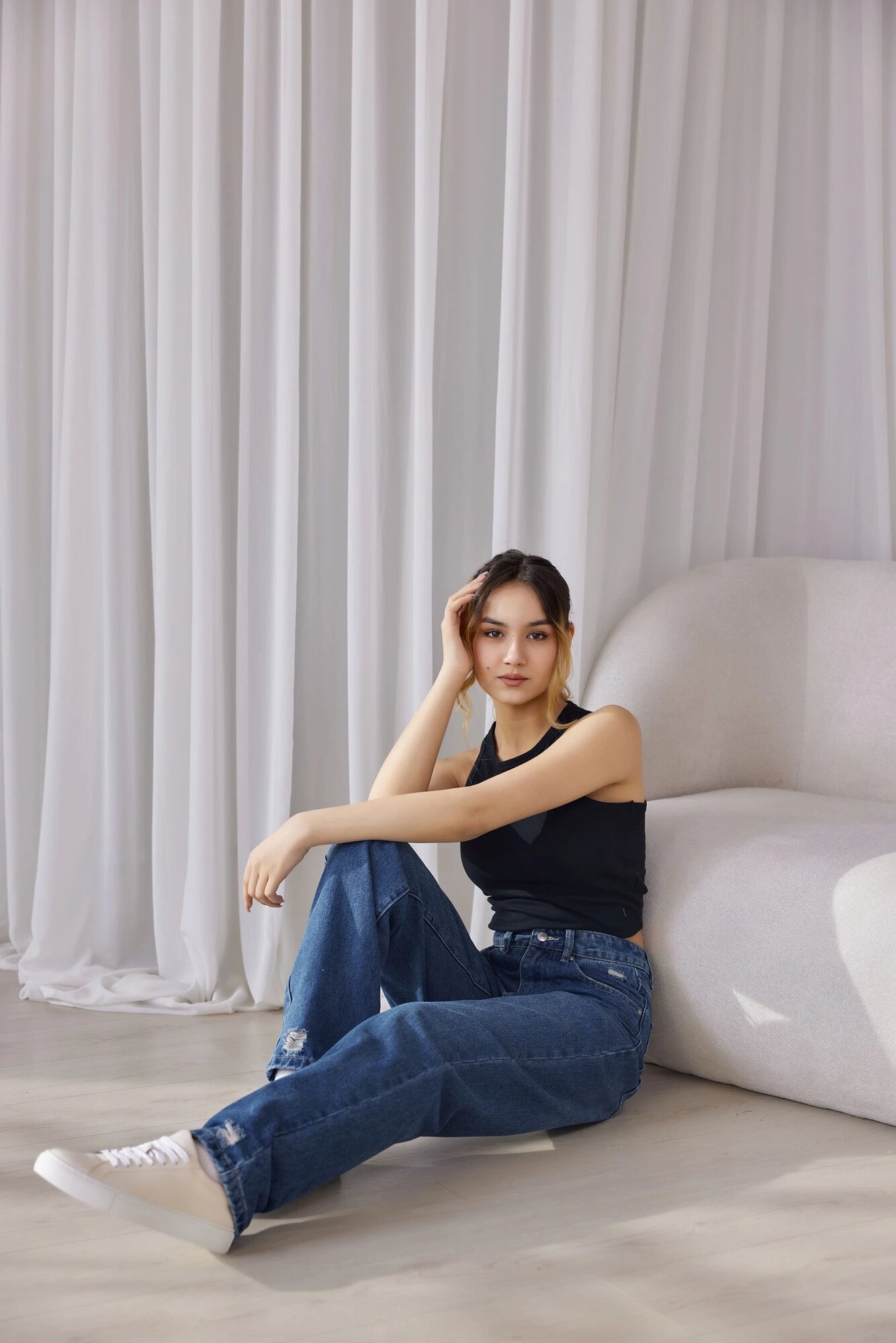 Базовые джинсы прямого кроя на средней посадке. Выполнены из плотного хлопкового денима с приятной фактурой и элементами потертости. Подчеркнут талию и не будут стеснять при движении.