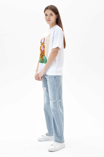 Джинсы прямого кроя на высокой посадке, дополненные эффектом рванья и акцентными карманами. Выполнены из плотного хлопкового денима с приятной фактурой. Подчеркнут талию и не будут стеснять при движении.