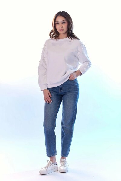 Базовые джинсы прямого кроя на высокой посадке с эффектом белых потертостей — стильная и универсальная модель, которая идеально подчеркивает фигуру. Легко комбинируются с различными топами и обувью для создания модных повседневных образов.