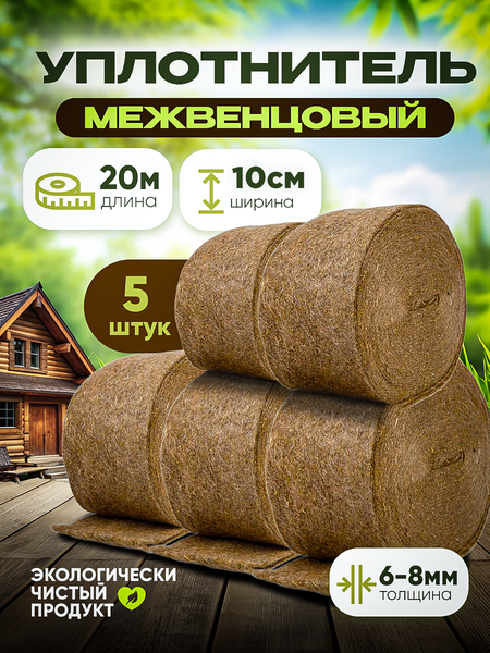 Межвенцовый уплотнитель от популярного российского производителя предназначен для прокладки между венцами деревянных конструкций, представляет собой натуральную, простую в эксплуатации изоляцию. Используется в процессе строительства деревянных домов, утепляет соединения между элементами для сборки. Благодаря устойчивости к влажности и гниению, подходит для утепления бань. Высококачественный плотный материал сжимается под естественным весом бревен, заполняя зазоры между срубами и делая постройку герметичной, устойчивой к продуванию и потере тепла. Длина 20 м. Комплект 5 штук Уплотнители джутовые/джут/теплоизоляция/герметизация джутовая/утеплитель джутовый