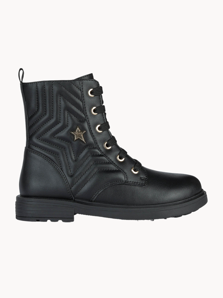 Ботинки GEOX модели Eclair для девочек сочетают в себе стиль и комфорт. Эти ботинки представлены в чёрном цвете и доступны в размере 34. Изготовлены из искусственной кожи, они идеально подходят для современных девушек и привносят в армейский дизайн нарядную нотку, женственную и современную.