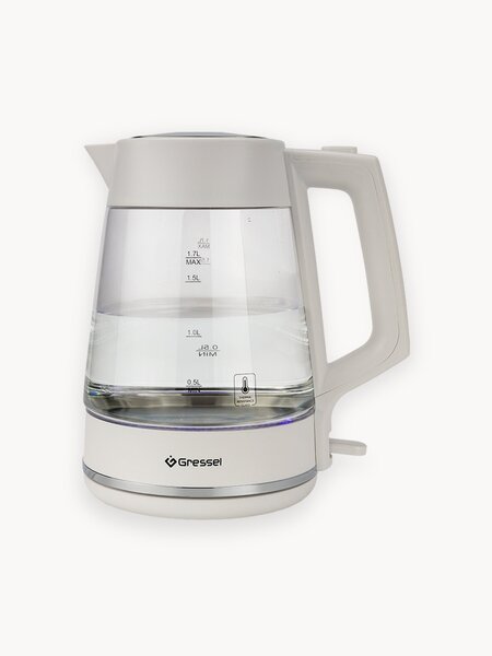 Электрический чайник Gressel GRK-1114 – стиль, безопасность и надежность в каждой детали Надежность контроллера Strix Чайник Gressel GRK-1114 оснащен высококачественным контроллером Strix, рассчитанным на 15 000 циклов закипания, что гарантирует долгий срок службы и безопасность устройства. Мощность 2200 Вт и объем 1,7 литра позволяют быстро вскипятить воду для всей семьи. Защита и безопасность Функции защиты от перегрева и включения без воды предотвращают повреждения и продлевают срок службы. Чайник автоматически отключается, если резервуар пуст, обеспечивая спокойствие и безопасность на кухне. Термостойкий стеклянный корпус с подсветкой Корпус из термостойкого стекла "Thermal resistance glass" не только привлекателен, но и надежен, выдерживает высокие температуры и защищает от перегрева. Встроенная синяя подсветка создает стильный визуальный эффект во время работы. Чистая вода благодаря сетчатому фильтру Сетчатый фильтр защищает от накипи и примесей, улучшая качество воды и сохраняя вкус напитков. Удобство в использовании Чайник оснащен крышкой, открывающейся одним нажатием, шкалой уровня воды для удобного наполнения и кабелем длиной 70 см. Компактные размеры делают чайник идеальным для любой кухни. Гарантия 3 года Высокое качество Gressel GRK-1114 подтверждается гарантией на 3 года – долговечное и стильное решение для повседневного использования. Gressel GRK-1114 – надежный и стильный выбор для комфортного кипячения воды!