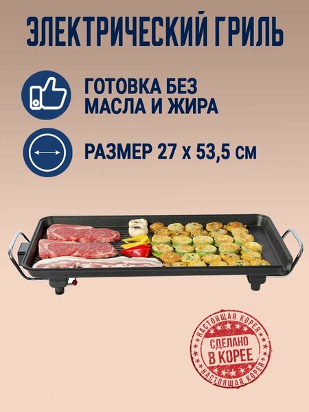 В последнее время восточная еда в тренде и пользуется баснословной популярностью. Многие слышали о таком корейском блюде, как самгепсаль. Его суть в том, что участники трапезы жарят кусочки жирной не маринованной и не посыпанной специями свинины на стоящем на столе гриле. Как результат, получается сочное и аппетитное мясо, особенно если оно приготовлено при помощи высококачественного прибора. Преимущества электрического гриля HM-1300G: - Готовьте прямо на кухне. Особенность электрогриля в том, что для нагрева используется электрический ток. Как результат, отсутствует дым от сгорания топлива и эксплуатация прибора безопасна даже в невентилируемом помещении. - Откажитесь от масла. Если вы - человек, который следит за своим здоровьем и старается правильно питаться, то электрический гриль HM-1300G - лучший для вас выбор. Для готовки не обязательно использовать масло. Благодаря специальному покрытию еда никогда не пригорит. - Упростите себе жизнь. Чтобы начать готовить на гриле, нужно только включить его в розетку. Вам больше не придется тратить время на розжиг угля. - Возьмите гриль с собой на дачу. Электрогриль HM-1300G имеет небольшие габариты, поэтому вы сможете взять его с собой, отправляясь на отдых в загородный дом. 5 режимов температуры: 1. Низкий - Поддержание пищи в тепле 2. Около 80℃ - Поддержание пищи в тепле во время еды 3. Около 160℃ - Медленное приготовление 4. Около 180℃ - Жарка или приготовление на пару 5. Около 250℃ - Приготовление пищи на гриле, требующей высоких температур