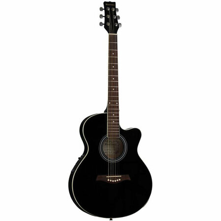 Martinez SW-024 HC/BK - гитара акустическая, верхняя дека - ель, нижняя дека и обечайка - махагон, цвет - чёрный. Обладает достойным звучанием и современным внешним видом. Стоит отметить высокое качество изготовления гитары.