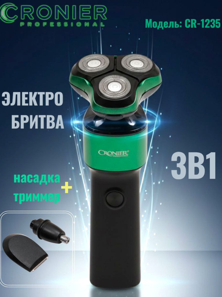 Электробритва Cronier 3 в 1 - это многофункциональное устройство, разработанное специально для мужчин. Она сочетает в себе функции электробритвы, триммера и машинки для стрижки бороды. Электробритва Cronier 3 в 1 обеспечивает гладкое и комфортное бритье благодаря своим острым лезвиям. Она легко справляется с жесткими и короткими волосами, обеспечивая быстрое и чистое бритье. Триммер в комплекте позволяет аккуратно подравнивать волосы на лице, придавая им ухоженный вид. Вы сможете легко и быстро подровнять бороду, усы или бакенбарды, не тратя много времени и усилий. Машинка для стрижки бороды позволяет создавать стильные и аккуратные бороды и баки. Вы сможете экспериментировать с различными стилями и формами бороды, не выходя из дома. Электробритва Cronier 3 в 1 - это надежный и удобный инструмент для ухода за собой, который поможет вам поддерживать свою внешность на высоком уровне.