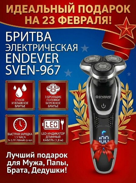 {"widgets":{"@card/UniversalPromoBadge":{"/content/page/fancyPage/defaultPage/universalPromoBadge":{"wrapperProps":{"margins":{"bottom":"3"}},"initialTime":1771725931856,"offerComposeId":"13786172302163464768"}}},"meta":{"/content/page/fancyPage/defaultPage/universalPromoBadge":{"name":"@card/UniversalPromoBadge"}},"collections":{"productServiceSnippets":{"13786172302163464768":{"productSnippet":{"snippetId":"document_id","type":"MODEL_CARD_LAYOUT","productPayload":{"snippetStyle":"NORMAL","title":{"value":"Шейвер для сухого и влажного бритья, электробритва мужская электрическая ENDEVER SVEN-967, три бреющие головки"},"badges":{"gallery":[{"item":{"badgeType":"ORIGINAL","size":"S","style":"NORMAL","contentType":"TEXT","textPayload":{"text":"ОРИГИНАЛ"}},"type":"BADGE"}]},"price":{"actualPrice":{"amount":{"intPart":595427,"currency":"UZS"},"style":"RED","type":"OTHER_DISCOUNT"},"oldPrice":{"amount":{"intPart":992378,"currency":"UZS"},"style":"STRIKETHROWED"}},"signals":{"customsFee":{"text":{"text":"Возможна пошлина"}}},"gallery":{"mediaItems":[{"picture":{"baseUrl":"https://avatars.mds.yandex.net/get-mpic/16498485/2a0000019bb6277f77fcbb4de01f1ea1a5de/","width":597,"height":800,"title":"Шейвер для сухого и влажного бритья, электробритва мужская электрическая ENDEVER SVEN-967, три бреющие головки"},"type":"IMAGE"},{"picture":{"baseUrl":"https://avatars.mds.yandex.net/get-mpic/13581167/2a0000019bb6277f7eab26cd36cedd2bbf1c/","width":900,"height":1200,"title":"Шейвер для сухого и влажного бритья, электробритва мужская электрическая ENDEVER SVEN-967, три бреющие головки"},"type":"IMAGE"},{"picture":{"baseUrl":"https://avatars.mds.yandex.net/get-mpic/16824886/2a0000019bb6277f7e652a8e9be7280e9a3f/","width":900,"height":1200,"title":"Шейвер для сухого и влажного бритья, электробритва мужская электрическая ENDEVER SVEN-967, три бреющие головки"},"type":"IMAGE"},{"picture":{"baseUrl":"https://avatars.mds.yandex.net/get-mpic/16290521/2a0000019bb6277f7eb646e49812c6d04c6f/","width":900,"height":1200,"title":"Шейвер для сухого и влажного бритья, электробритва мужская электрическая ENDEVER SVEN-967, три бреющие головки"},"type":"IMAGE"},{"picture":{"baseUrl":"https://avatars.mds.yandex.net/get-mpic/18316709/2a0000019bb6277f682dfa02b974fd87ac62/","width":900,"height":1200,"title":"Шейвер для сухого и влажного бритья, электробритва мужская электрическая ENDEVER SVEN-967, три бреющие головки"},"type":"IMAGE"},{"picture":{"baseUrl":"https://avatars.mds.yandex.net/get-mpic/16417422/2a0000019bb6277f7e7cdfab9d7eee28e1f2/","width":900,"height":1200,"title":"Шейвер для сухого и влажного бритья, электробритва мужская электрическая ENDEVER SVEN-967, три бреющие головки"},"type":"IMAGE"},{"picture":{"baseUrl":"https://avatars.mds.yandex.net/get-mpic/19767307/2a0000019bb6277f7d3ce33319d520628c38/","width":900,"height":1200,"title":"Шейвер для сухого и влажного бритья, электробритва мужская электрическая ENDEVER SVEN-967, три бреющие головки"},"type":"IMAGE"},{"picture":{"baseUrl":"https://avatars.mds.yandex.net/get-mpic/4012481/2a0000019bb6277f750dddb648fabd8ad89d/","width":900,"height":1200,"title":"Шейвер для сухого и влажного бритья, электробритва мужская электрическая ENDEVER SVEN-967, три бреющие головки"},"type":"IMAGE"},{"picture":{"baseUrl":"https://avatars.mds.yandex.net/get-mpic/16148264/2a0000019bb6277f6851ed3b439688018b1b/","width":900,"height":1200,"title":"Шейвер для сухого и влажного бритья, электробритва мужская электрическая ENDEVER SVEN-967, три бреющие головки"},"type":"IMAGE"},{"picture":{"baseUrl":"https://avatars.mds.yandex.net/get-mpic/18210224/2a0000019bb6277f7d33daf976589b4655d2/","width":900,"height":1200,"title":"Шейвер для сухого и влажного бритья, электробритва мужская электрическая ENDEVER SVEN-967, три бреющие головки"},"type":"IMAGE"},{"picture":{"baseUrl":"https://avatars.mds.yandex.net/get-mpic/3918703/2a0000019bb6277f7e2e61709eac264f25f5/","width":900,"height":1200,"title":"Шейвер для сухого и влажного бритья, электробритва мужская электрическая ENDEVER SVEN-967, три бреющие головки"},"type":"IMAGE"},{"picture":{"baseUrl":"https://avatars.mds.yandex.net/get-mpic/16174181/2a0000019bb6277f7feea24163dcef6ee66a/","width":900,"height":1200,"title":"Шейвер для сухого и влажного бритья, электробритва мужская электрическая ENDEVER SVEN-967, три бреющие головки"},"type":"IMAGE"},{"picture":{"baseUrl":"https://avatars.mds.yandex.net/get-mpic/18124308/2a0000019bb6277f7de087c606a679f1bd92/","width":900,"height":1200,"title":"Шейвер для сухого и влажного бритья, электробритва мужская электрическая ENDEVER SVEN-967, три бреющие головки"},"type":"IMAGE"},{"picture":{"baseUrl":"https://avatars.mds.yandex.net/get-mpic/18491125/2a0000019bb6277f79c2f5afad02a9351ed1/","width":900,"height":1200,"title":"Шейвер для сухого и влажного бритья, электр