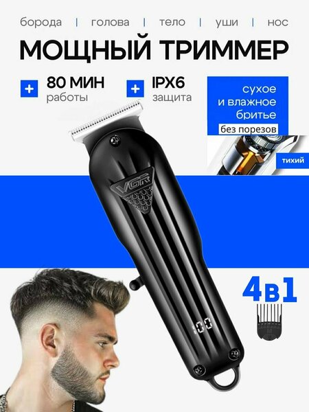 Электробритва-триммер VRG - это современное и функциональное решение для мужчин, которые стремятся к безупречному внешнему виду. Триммер отличается высокой производительностью и простотой в использовании. Он легко и точно стрижет волосы любой длины и текстуры, обеспечивая ровные и аккуратные стрижки без раздражения или повреждения кожи. Благодаря острому лезвию из нержавеющей стали, триммер стрижет волосы без усилий и обеспечивает разнообразные прически и стили. Триммер оснащен тремя насадками, которые позволяют легко изменять длину стрижки, создавая различные эффекты и подстраиваясь под индивидуальные предпочтения. Эргономичный дизайн и легкий вес триммера обеспечивают максимальную точность и контроль при стрижке. Беспроводная функция и долгое время работы от аккумулятора позволяют использовать триммер в любом месте и в любое время. В комплекте с триммером идут машинка для стрижки, 3 насадки, кабель питания, щетка для чистки и масло. Выбирая триммер для волос , вы получаете надежного помощника в создании и поддержании безупречного образа.