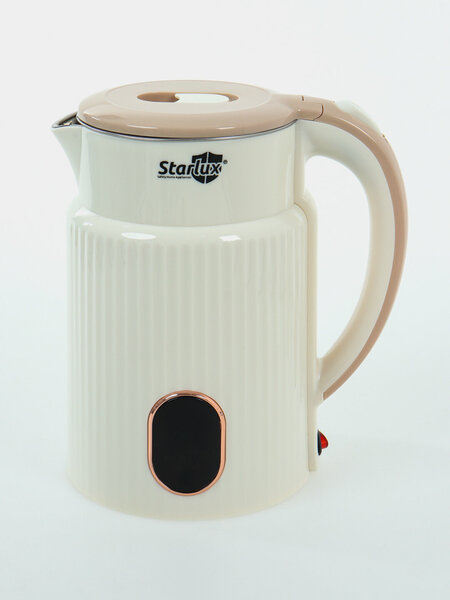 Электрический чайник Starlux SL-24151 – современный и удобный выбор Этот современный электрочайник имеет мощность 1500 Вт, быстро нагревает воду и очень удобен в повседневном использовании. Максимальная емкость чайника составляет 2 литра, что делает его идеальным выбором для больших семей или приема гостей. Основные преимущества: Цифровой дисплей — наглядно отображает температуру воды и обеспечивает простоту управления. Функция «Поддержание тепла» — поддерживает заданную температуру воды в течение длительного времени. Режим постоянной температуры 85°C — поддерживает оптимальную температуру для приготовления горячих напитков. Современный дизайн. Корпус синего цвета придаст вашей кухне красивый вид. Простота использования — оснащен однокнопочным управлением и системами безопасности.