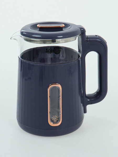 Электрический чайник Starlux SL-24151 – современный и удобный выбор Этот современный электрочайник имеет мощность 1500 Вт, быстро нагревает воду и очень удобен в повседневном использовании. Максимальная емкость чайника составляет 2 литра, что делает его идеальным выбором для больших семей или приема гостей. Основные преимущества: Цифровой дисплей — наглядно отображает температуру воды и обеспечивает простоту управления. Функция «Поддержание тепла» — поддерживает заданную температуру воды в течение длительного времени. Режим постоянной температуры 85°C — поддерживает оптимальную температуру для приготовления горячих напитков. Современный дизайн. Корпус синего цвета придаст вашей кухне красивый вид. Простота использования — оснащен однокнопочным управлением и системами безопасности.