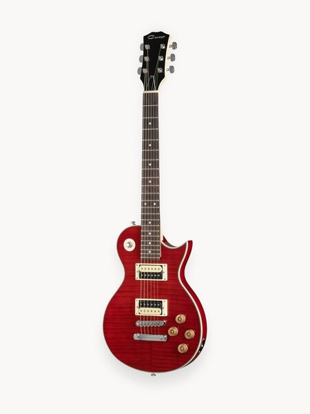 E231TRD - электрогитара от компании Caraya. Она имеет корпус формы Les Paul из древесины твердых пород. Гриф выполнен из клена и имеет накладку из палисандра с 22 ладами. В гитаре есть два датчика-хамбакера в бридже и неке.