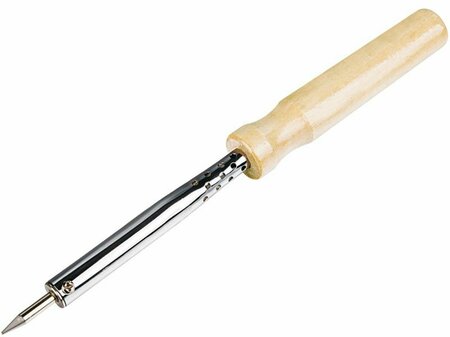 60 Вт Для выполнения мелких паяльных работ, пайки радиоэлектронных микросхем, монтажа и демонтажа электронных элементов при совместном использовании с припоями и флюсами, а также нагрева мелких деталей. Электропаяльник непрерывного нагрева снабжен жалом из латуни с никелированным покрытием, существенно продлевающим срок службы паяльника. Технические данные: Номинальное напряжение - 220 В. Род тока - переменный. Мощность - 60Вт. Максимальная температура нагрева жала - 400 °С. Время разогрева до максимальной температуры - 5-10 мин. Длина шнура - 1,1 м. Форма жала - коническая. Материал: металлический корпус, долговечное жало, ручка из поликарбоната.