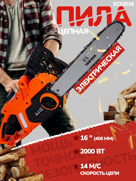 Электропила цепная тайгана ECS2016 - мощный и надежный инструмент для выполнения различных задач по уходу за деревьями, обрезке сучьев и распилке древесины. Мощность 2000 Вт обеспечивает высокую производительность и позволяет легко справляться с самыми сложными задачами. Длина шины составляет 406 мм, что позволяет работать с бревнами и стволами деревьев большого диаметра. Шаг цепи 3/8 дюйма и толщина звена 1,3 мм гарантируют высокую точность и качество распила. Электропила оснащена бесщеточным мотором, который обеспечивает долгий срок службы и стабильную работу. Тормоз цепи предотвращает случайное отсоединение и снижает риск получения травм. Автоматическая смазка цепи обеспечивает ее постоянную смазку, что продлевает срок службы и улучшает качество работы. Объем масляного бака составляет 320 мл, что позволяет реже доливать масло и обеспечивает непрерывную работу. Вес пилы составляет всего 5,7 кг, что делает ее удобной для переноски и использования на разных участках.