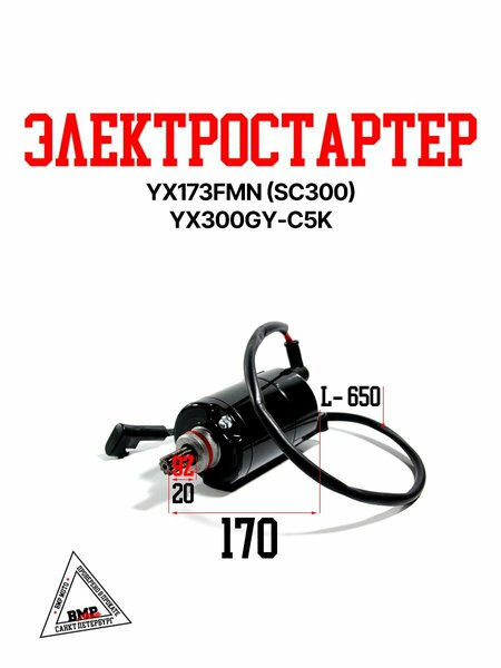 Электростартер YX173FMN (SC300) YX300GY-C5K Электростартер для двигателей YX173FMN модели SC300 и YX300GY-C5K — это надежное устройство, позволяющее легко запускать мотор без необходимости ручного крутящего усилия. Он обеспечивает быстрый запуск двигателя и удобство эксплуатации, особенно в холодную погоду или при частых использовании техники. Сделан из прочных материалов, гарантируя долгий срок службы и стабильную работу.
