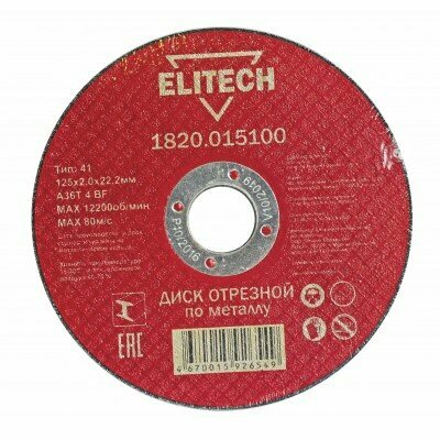 Диск отрезной по металлу 125х2,0 мм Elitech 1820.015100 Артикул 184659 Фирма ELITECH Тип Диск отрезной сталь Диаметр диска, мм 125 Толщина диска, мм 2 Тип (конструкция) отрезной Посадка диска, мм 22,2 Форма диска прямой Максимальная скорость вращения, об/мин 12200 Материал основы бакелитовая связка Материал абразива электрокорунд Материал армирования стекловолокно Отрезные круги для работы по металлу, или абразивные диски, устанавливаются на распиловочный электроинструмент и применяются для работы со сталью легированной, черными и цветными металлами. Чаще всего отрезными кругами абразивных дисков оснащаются болгарки. Этот полезный инструмент известен еще под названием угловой шлифмашины, но, как правило, пользуются им с целью распиловки металла: труб, уголков, листовых изделий.