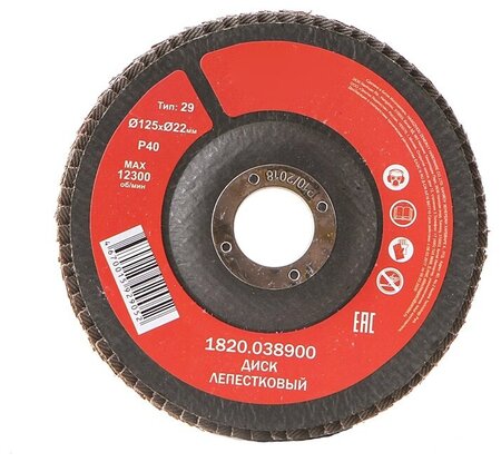 Лепестковый. Тип 29. Наружный диаметр 125 мм. Внутренний диаметр 22 мм. Зернистость Р40. Максимальная скорость вращения 12300 об/мин. Предназначен для использования в качестве оснастки для УШМ.