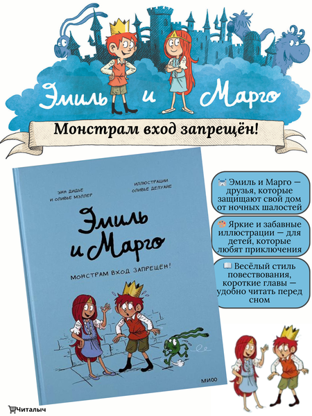 Развивает воображение: истории о Эмиле и Марго увлекают и вдохновляют. Учит важным ценностям: дружба, смелость и доброта – главные темы книги. Подходит для всей семьи: читайте вместе и обсуждайте приключения героев! Яркие иллюстрации: книга наполнена красочными картинками, которые понравятся и детям, и взрослым. Лёгкий слог: истории написаны простым и понятным языком, идеально подходят для самостоятельного чтения или чтения вслух. Добрая мораль: книга учит дружбе, смелости и умению находить выход из любой ситуации. Книга доступна в мягком переплёте – лёгком и удобном формате, который идеально подходит для чтения дома или в дороге. Несмотря на мягкую обложку, издание отличается качественной печатью и ярким оформлением. Купите сейчас и отправьтесь в незабываемое приключение вместе с Эмилем и Марго! Эмиль и Марго. Монстрам вход запрещен! Дидье, МэллерДобро пожаловать в увлекательный мир Эмиля и Марго – двух отважных друзей, которые не боятся столкнуться с монстрами, чтобы защитить свой дом и друзей! Эта книга – идеальное сочетание юмора, приключений и доброты. Вместе с Эмилем и Марго вы: Отправитесь в захватывающие путешествия. Познакомитесь с забавными и необычными персонажами. Узнаете, что даже самые маленькие герои могут совершать большие подвиги. Для кого эта книга?- Для детей от 6 лет, которые любят весёлые и захватывающие истории.- Для родителей, которые хотят привить детям любовь к чтению.- Для всех, кто ценит качественные детские книги с глубоким смыслом."Эмиль и Марго. Монстрам вход запрещён!" – это книга, которая подарит радость, смех и веру в то, что даже маленькие герои могут изменить мир.