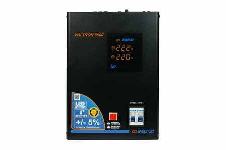 Стабилизатор Энергия Voltron 5000 5% Е0101-0158 широко распространен для эксплуатации в квартире, загородном доме, гараже, на дачном участке и т. д. Можно использовать при температуре ниже нуля. Обеспечивает надежную защиту бытовой техники от скачков напряжения. Мощности данной модели достаточно для электропитания небольшого насосного оборудования, маломощной автомобильной мойки и т. д. Аппарат отличается повышенной точностью и продолжительным сроком службы. Входное напряжение: 105-265 В. Выходное напряжение: 220 В. Количество фаз: 1. Мощность: 4 кВт. Max входное напряжение: 265 В. Min входное напряжение: 105 В. Погрешность: 5 %. Тип: релейный. Наличие сетевой вилки: нет. Розетка на корпусе: нет. Индикация: цифровая. Работа при минусовой температуре: да. КПД: 98 %. Вес нетто: 10 кг. Габариты без упаковки: 310х220х135 мм. Частота питающей сети: 50 Гц. Max мощность: 5 кВ*А. Охлаждение: принудительное. Класс защиты: IP 20 (негерметизирован). Относительная влажность: 95 %. Время регулирования: 0.01 с. Способ установки: настенный/напольный. Диапазон рабочих температур: от -30 до +40 °С. Комплектация: Стабилизатор, Инструкция, Упаковка.