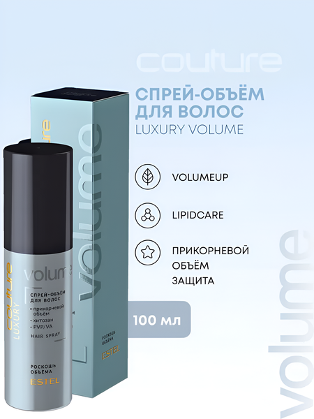 ESTEL Haute Couture Luxury Volume - Спрей-объём для волос, 100 мл Спрей-объём для волос Luxury Volume Spray от Estel Professional предназначен для тонких и ослабленных волос. Он обеспечивает потрясающий объем и завораживающий блеск, а также защиту от внешних нагрузок в течение всего дня. Формула спрея включает питательный коктейль из масел и экстрактов растительного происхождения, а также протеинов. Эти компоненты восполняют недостаток влаги и витаминов, укрепляют травмированные кончики, омолаживают волосы и защищают их от ультрафиолетового излучения. Спрей разработан специально для работы с тонкими волосами, поэтому его формула свободна от силиконов и других компонентов, способных перегружать локоны. Он равномерно распределяется, мгновенно впитывается и делает процесс создания пышных укладок более комфортным и быстрым. Применение спрея Luxury Volume Spray простое и удобное: подготовьте волосы (вымойте и слегка подсушите), распылите немного спрея на прикорневую зону и уложите с помощью фена или брашинга. Спрей-объём для волос Luxury Volume Spray от Estel Professional – это профессиональное средство для ухода за волосами, которое обеспечивает не только объем и блеск, но и защиту от внешних воздействий.