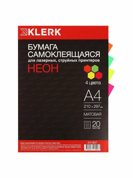 Самоклеящиеся этикетки — универсальное средство для маркировки, учета и организации повседневной работы в офисе, на складе и дома. Они отличаются простотой применения: снимаете защитную подкладку и наклеиваете на любые поверхности — бумаги, картон, пластик, стекло и металл — без дополнительных инструментов. Этикетки бывают различной формы и размера что позволяет точно подбирать под нужды проекта или учета: от компактных круглых и квадратных до длинных лент для маркировки коробок и витрин. Стойкость к стиранию и воздействию влаги обеспечивает сохранность информации даже в складских условиях, а яркие цвета и контрастные шрифты улучшают читаемость на расстоянии. Существуют различные виды материалов: матовые поверхности подходят для обычной печати ручкой или лазерного принтера, глянцевые обеспечивают более насыщенный внешний вид, а полупрозрачные этикетки позволяют маркировать поверхности, сохраняя видимую подложку. Этикетки применяются для инвентаризации, идентификации товаров, упаковки, учёта материалов, этикетирования мероприятий и любой задачи, где важна ясная и быстрая коммуникация информации. Этикетки самоклеящиеся, 210*297 мм, 1 шт. на листе, 70 г/кв. м, А4, 20 листов, цвет ассорти 4 цвета, Brigfut, 241807. Торговая марка: Brigfut; Страна: Китай; Упаковка: 5/150; Сертификат: 1609.