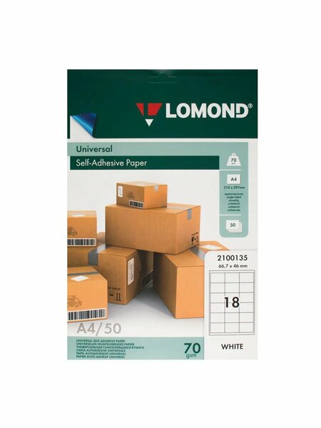 Самоклеящиеся этикетки — универсальное средство для маркировки, учета и организации повседневной работы в офисе, на складе и дома. Они отличаются простотой применения: снимаете защитную подкладку и наклеиваете на любые поверхности — бумаги, картон, пластик, стекло и металл — без дополнительных инструментов. Этикетки бывают различной формы и размера что позволяет точно подбирать под нужды проекта или учета: от компактных круглых и квадратных до длинных лент для маркировки коробок и витрин. Стойкость к стиранию и воздействию влаги обеспечивает сохранность информации даже в складских условиях, а яркие цвета и контрастные шрифты улучшают читаемость на расстоянии. Существуют различные виды материалов: матовые поверхности подходят для обычной печати ручкой или лазерного принтера, глянцевые обеспечивают более насыщенный внешний вид, а полупрозрачные этикетки позволяют маркировать поверхности, сохраняя видимую подложку. Этикетки применяются для инвентаризации, идентификации товаров, упаковки, учёта материалов, этикетирования мероприятий и любой задачи, где важна ясная и быстрая коммуникация информации. Этикетки самоклеящиеся, 66,7*46 мм, 18 шт. на листе, 70 г/кв. м, А4, 50 листов, цвет белый, Lomond, 2100135. Торговая марка: Lomond; Страна: россия; Упаковка: 27.