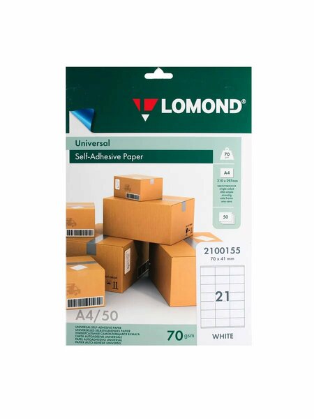 Самоклеящиеся этикетки — универсальное средство для маркировки, учета и организации повседневной работы в офисе, на складе и дома. Они отличаются простотой применения: снимаете защитную подкладку и наклеиваете на любые поверхности — бумаги, картон, пластик, стекло и металл — без дополнительных инструментов. Этикетки бывают различной формы и размера что позволяет точно подбирать под нужды проекта или учета: от компактных круглых и квадратных до длинных лент для маркировки коробок и витрин. Стойкость к стиранию и воздействию влаги обеспечивает сохранность информации даже в складских условиях, а яркие цвета и контрастные шрифты улучшают читаемость на расстоянии. Существуют различные виды материалов: матовые поверхности подходят для обычной печати ручкой или лазерного принтера, глянцевые обеспечивают более насыщенный внешний вид, а полупрозрачные этикетки позволяют маркировать поверхности, сохраняя видимую подложку. Этикетки применяются для инвентаризации, идентификации товаров, упаковки, учёта материалов, этикетирования мероприятий и любой задачи, где важна ясная и быстрая коммуникация информации. Этикетки самоклеящиеся, 70*41 мм, 21 шт. на листе, 70 г/кв. м, А4, 50 листов, цвет белый, Lomond, 2100155. Торговая марка: Lomond; Страна: россия; Упаковка: 27.