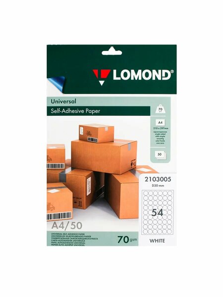 Самоклеящиеся этикетки — универсальное средство для маркировки, учета и организации повседневной работы в офисе, на складе и дома. Они отличаются простотой применения: снимаете защитную подкладку и наклеиваете на любые поверхности — бумаги, картон, пластик, стекло и металл — без дополнительных инструментов. Этикетки бывают различной формы и размера что позволяет точно подбирать под нужды проекта или учета: от компактных круглых и квадратных до длинных лент для маркировки коробок и витрин. Стойкость к стиранию и воздействию влаги обеспечивает сохранность информации даже в складских условиях, а яркие цвета и контрастные шрифты улучшают читаемость на расстоянии. Существуют различные виды материалов: матовые поверхности подходят для обычной печати ручкой или лазерного принтера, глянцевые обеспечивают более насыщенный внешний вид, а полупрозрачные этикетки позволяют маркировать поверхности, сохраняя видимую подложку. Этикетки применяются для инвентаризации, идентификации товаров, упаковки, учёта материалов, этикетирования мероприятий и любой задачи, где важна ясная и быстрая коммуникация информации. Этикетки самоклеящиеся, круглые Ø 30 мм, 54 шт. на листе, 70 г/кв. м, А4, 50 листов, цвет белый, Lomond, 2103005. Торговая марка: Lomond; Страна: россия; Упаковка: 27.