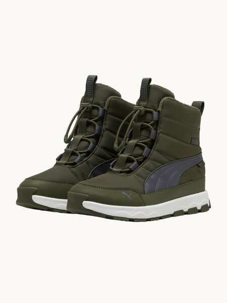 Ботинки PUMA из линии Evolve, модель Puretex, предназначены для детей. Эти зимние ботинки представлены в хаки цвете и доступны в размере 37. Они идеально подходят для повседневного использования, игр на свежем воздухе, спокойных прогулок и активного отдыха.