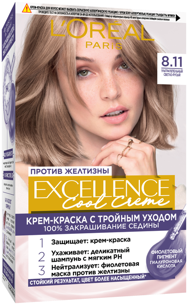 L’Oréal Paris Стойкая крем-краска для волос "Excellence Cool Crème", оттенок 8.11, Ультрапепельный, Светло-Русый