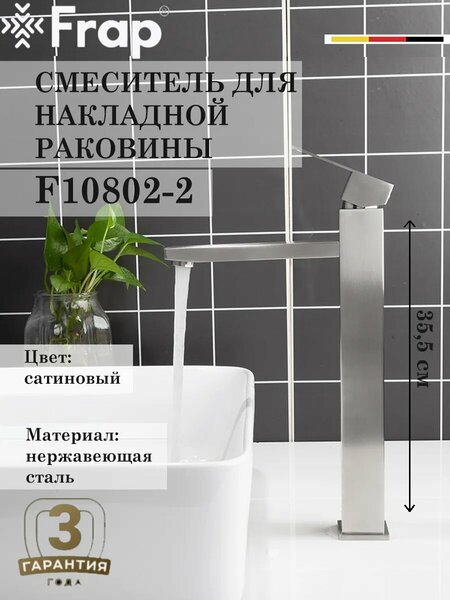 Основные параметры: 1) Цвет: сатин 2) Поверхность: матовая 3) Керамический картридж: G51-6 (35mm) 4) Аэратор: G72-1-6 M24- наружная резьба 5) Крепление: М10*1-G1/2 гайка (60cm) Смеситель для раковины FRAP F10802-2 - стильное и функциональное решение для вашей ванной комнаты. Однорычажный механизм управления позволяет легко регулировать температуру и напор воды, а керамический картридж гарантирует плавную работу и долговечность. Традиционный излив с аэратором обеспечивает комфортное использование, а длина излива в 17,8 см подходит для большинства раковин. Смеситель выполнен из нержавеющей стали SUS304 и покрыт хромом, что придает ему элегантный вид и устойчивость к коррозии. В комплект входит все необходимое для установки: смеситель, подводка, крепление и гарантийный талон. Серия F802: Душевая система: F24802; F24802-1 Смеситель для раковины: F10802 Смеситель для кухни: F43802 Смеситель для ванны: F32802 Гигиенический душ: F72802 Душевая система скрытого монтажа: F71802