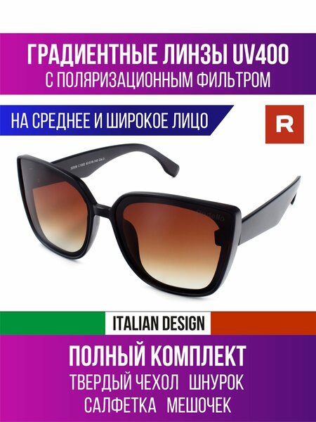 Эксклюзивно только в нашем магазине, тренд сезона весна-лето 2024 на среднее и широкое лицо! Крупные дизайнерские стильные коричнево-бордовые градиентные модные брендовые солнцезащитные очки с поляризацией только от Redelio Россия. Новые прямоугольные, квадратные модели в пластиковой оправе с поляризацией, антибликом и интересным градиентом! Идеальные на немаленькое лицо, эталонная форма на среднее и широкое лицо! Данная модель женских солнцезащитных очков гарантирует защиту глаз от негативного воздействия солнечных лучей благодаря ультрафиолетовому фильтру UV 400. Категория светопропускания - 3 (8-18%) подходит для яркого солнца и отдыха на пляже. Благодаря форме очков "Прямоугольные" и размеру оправы, рекомендуются на среднее и широкое лицо. Модель изготовлена из прочных гипоаллергенных материалов и безопасна для здоровья. Дужки и оправа выполнены из пластика. Произведено в России. В комплект с очками прилагаются дополнительные принадлежности: чехлы, салфетки или шнурок. Полную комплектацию можно увидеть на фото интересующей вас модели.