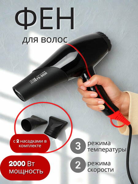 Профессиональный фен для волос FaKang ION FK-9900 - это незаменимый помощник для тех, кто ценит качество и эффективность. Мощность 2000 Вт обеспечивает быстрый и качественный результат, что делает его незаменимым инструментом как для профессионалов, так и для домашнего использования. Фен оснащен шнуром длиной 1,5 метра, что обеспечивает удобство и легкость в работе. Электронно-кнопочная панель управления позволяет выбирать параметры нагрева и скорость обдува, адаптируясь к типу волос и способу укладки. В комплект мультистайлера входят насадки, позволяющие придать прическе объем и обеспечить плотный или объемный поток воздуха. FaKang ION FK-9900 - это сочетание стиля, функциональности и качества, которое оценят как профессионалы, так и домашние пользователи.