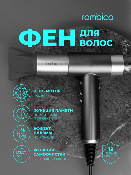 Фен для волос Rombica RHD-002, ионизация, с BLDC мотором, мощность 1700Вт