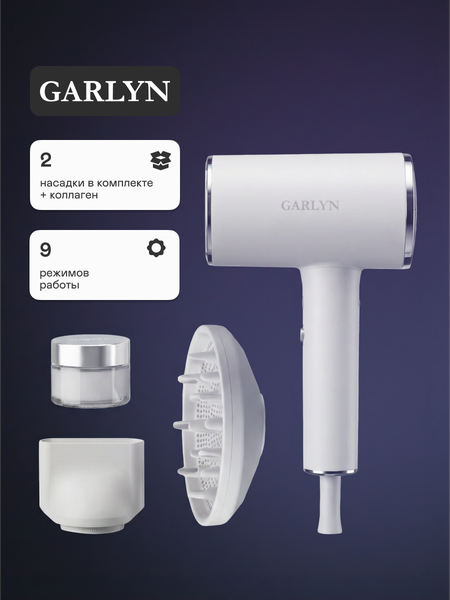 Фен GARLYN Hair Pro 5. Мощность 2000 Вт. 9 режимов работы. Уровень шума 79 дБ.