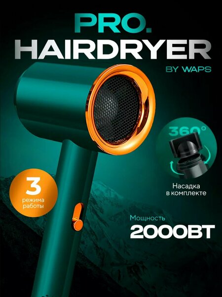 Фен PRO IONIC 2000W — профессиональный фен с технологией ионизации и коллагеновым уходом. Бережно сушит волосы, сохраняет их естественную структуру и препятствует пересушиванию. ⭐ Преимущества: Быстрая сушка — мощный поток воздуха, сушка за 59 секунд. Ионизация — устраняет статическое электричество, делает волосы гладкими и блестящими. Коллагеновый уход — помогает увлажнять волосы и снижает ломкость. 3 режима работы: холодный воздух, оптимальная температура 40–50°C, высокая 60°C. Технология низкого излучения — бережная сушка без повреждения структуры волос. Лёгкий и компактный — удобно брать с собой в путешествия и использовать дома. В комплекте: Фен Насадка-концентратор Размеры: Длина: 26 см Длина корпуса: 14 см Диаметр: 7 см Мощность: 2000W PRO IONIC 2000W — профессиональный уход за волосами каждый день!