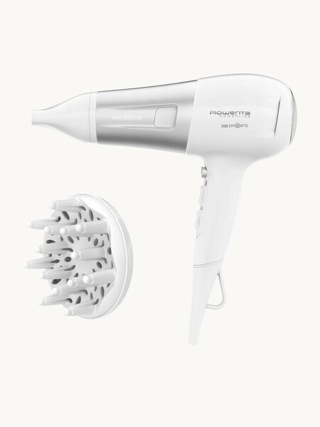 Фен для волос Rowenta Powerline CV5930F0 ухаживает за волосами в процессе сушки и помогает создавать безупречную укладку день за днем. Маленький и мощный фен оснащен технологией ионизации Ionic Booster, которая снимает статическое электричество и разглаживает волосы, делает их послушными и сияющими. Долговечный DC-мотор ручного фена оснащен технологией Effiwatts, благодаря которой фен работает с мощностью, эквивалентной 2400 Вт, при фактическом потреблении 2100 Вт. Режим холодного воздуха фена Ровента поможет закрепить получившуюся укладку надолго, не разрушая структуру волоса. Легкая регулировка воздушного потока для идеального результата и качественного ухода за Вашим типом волос осуществляется благодаря 2 настройкам скорости и 3 температурным режимам, а режим Thermo Control обеспечивает сушку при оптимальной температуре, защищая волосы и сохраняя их естественную красоту день за днем. Добиться детальной укладки помогает комплект из 2 насадок: узкая насадка концентратор шириной 12 мм, которая направляет воздушный поток точно на прядь, гарантируя тщательную укладку и результат надолго, и эффективная насадка диффузор, с помощью которой Вы добьетесь впечатляющего объема - насадка приподнимает волосы у корней и помогает создавать упругие волны, локоны и кудри. Компактный фен оснащен съемной решеткой, которая позволяет легко проводить его чистку для продления срока службы. Эргономичный дизайн корпуса и шнур длиной 1.8 м обеспечивают свободу движения и простое комфортное использование. Фен так же оснащен петлей для подвешивания, что сделает хранение устройства максимально удобным. Фен Powerline от Rowenta придаст вашим волосам головокружительный блеск и поможет выглядеть превосходно каждый день!