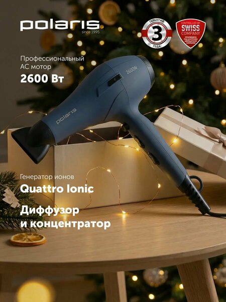Достоинства:Отличный фен. Несколько режимов скорости и температуры - это очень удобно. Недостатки:Для меня нет! Комментарий:Фен Polaris - отличный вариант для ежедневного использования. Он хорошо справляется со своей задачей и дополнительные функции (вроде ионизации) делают укладку более комфортной. А насадка « диффузор» вообще шикарная вещь для моих кудряшек! Рекомендую 🫶🏻